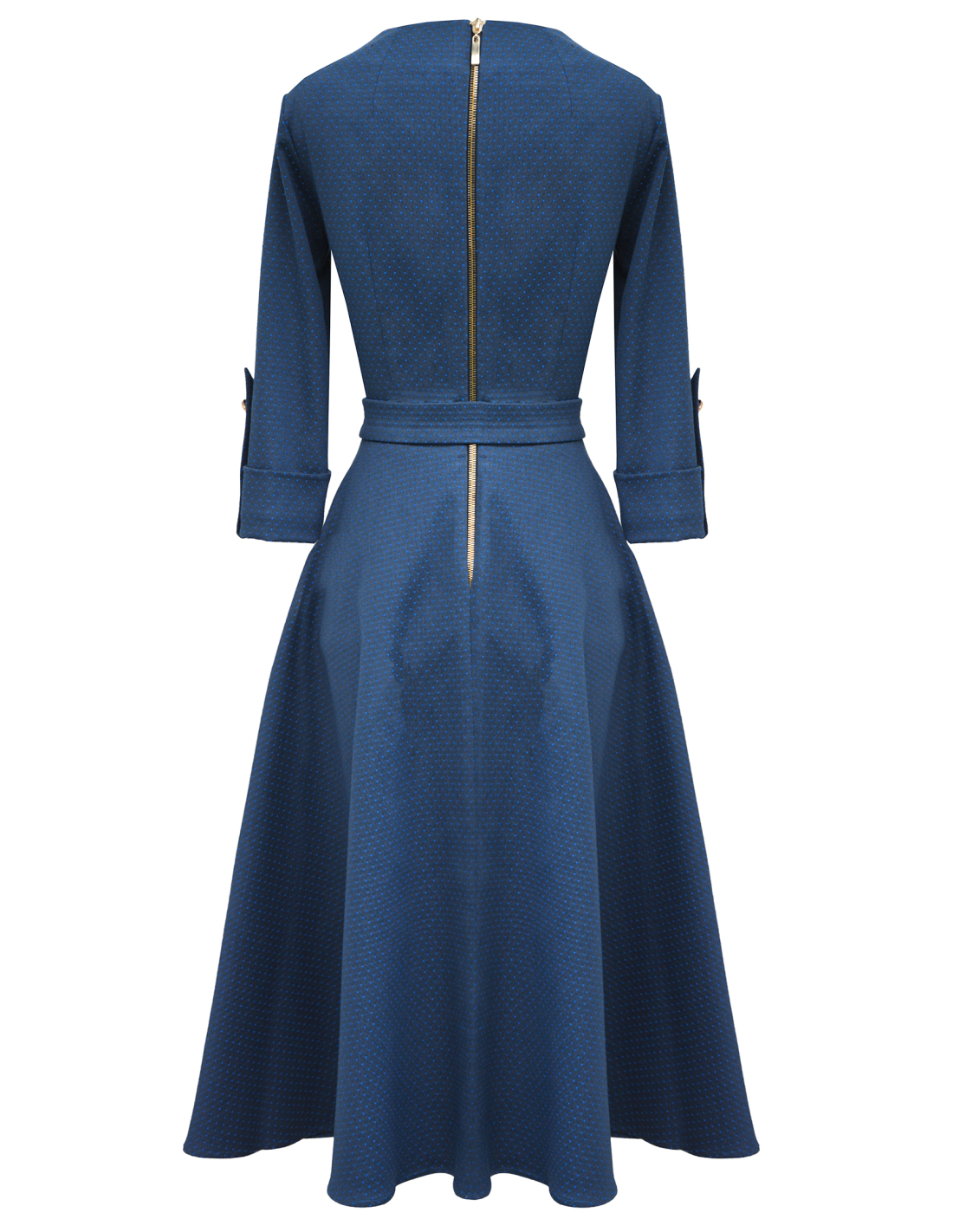 Góra dopasowana, rękaw z ozdobnymi metalowymi, złotymi guzikami